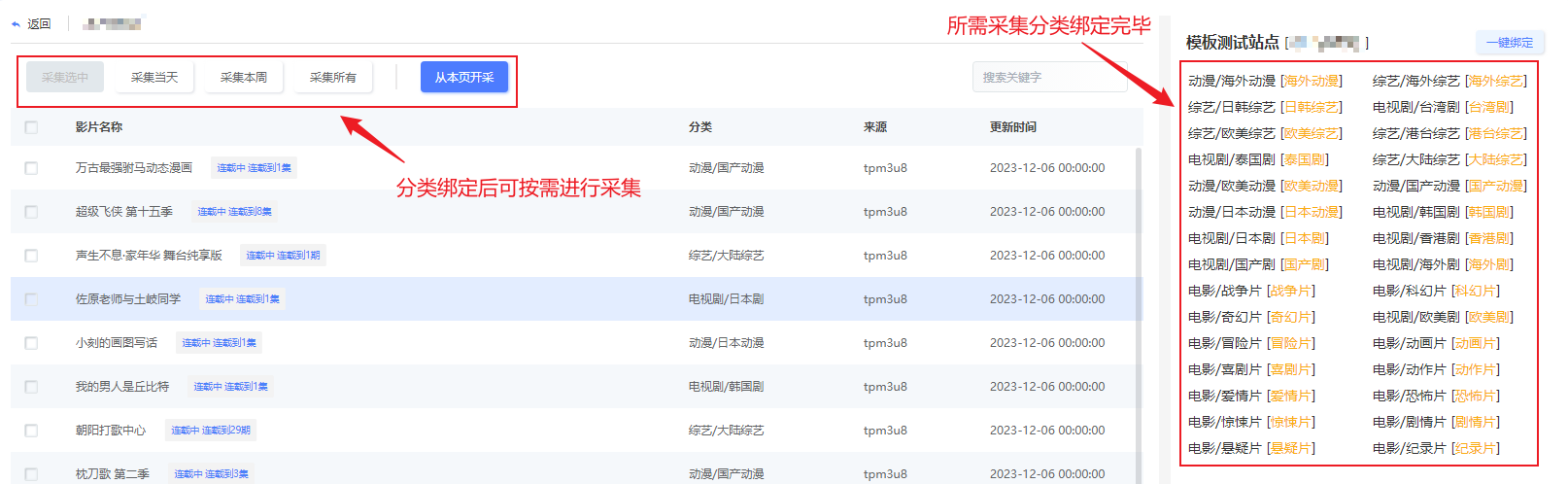分类绑定完成后,就可以开始进行快捷采集了,或者搜索电影进行精细采集。